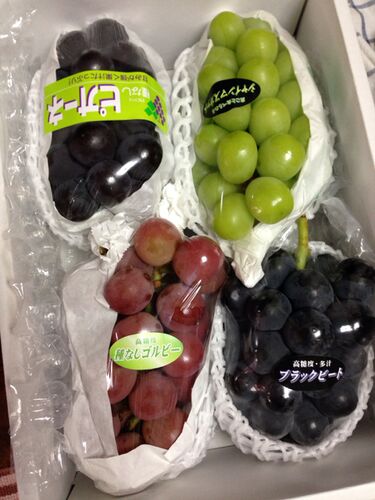 我が家に葡萄がやってきた。 それも最高級葡萄達だ。近所の果物屋でピオーネを見ながら 「あーーーおばぁちゃんと良く巨峰食べたなぁ」と思ってたら 叔母さんから葡萄が届いた。 なんて日だっ!! 最高だっ!!