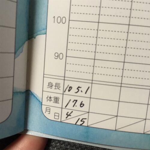 幼稚園でやった身体測定記録が来た。 大きくなりました。 3歳9ヶ月。
