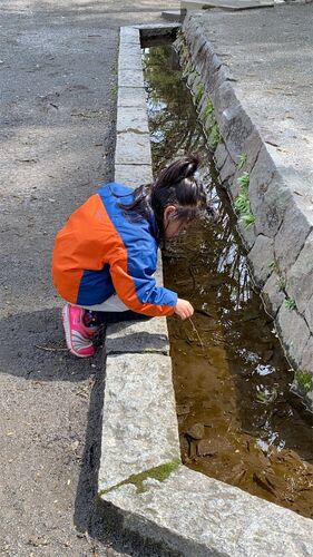 公園の水路で何やら発見。 おたまじゃくし! 春だね。