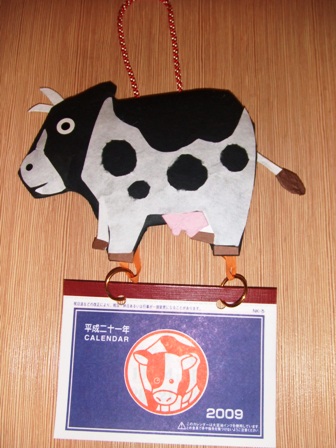 母に貰ったキットで「丑年カレンダー」を作りましたゎ。一年って早いねぇ。来年は丑年ょ。
